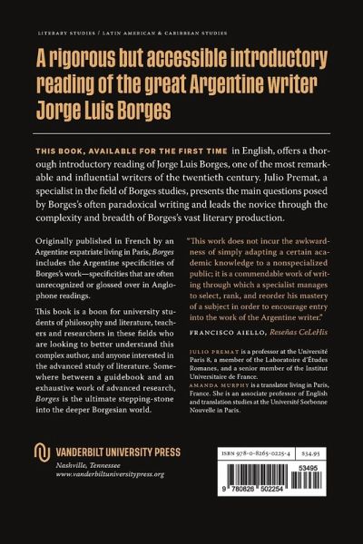 Offers a thorough introductory reading of Jorge Luis Borges, one of the most remarkable and influential writers of the twentieth century. Julio Premat, a specialist in Borges studies, presents the main questions posed by Borges's often paradoxical writing, and leads the novice through the complexity and breadth of Borges's vast literary production.