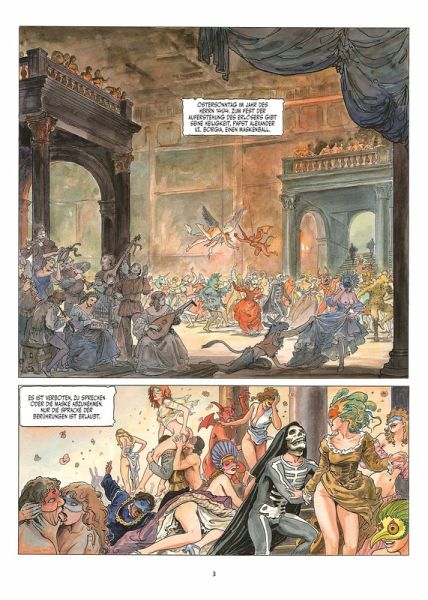 Gewalt und Wollust, Intrigen und Verschwörungen bilden den Rahmen dieses historischen Comic-Epos, das von Alejandro Jodorowsky in fieberhaftem Stil erzählt und von Milo Manara verführerisch opulent illustriert wird.