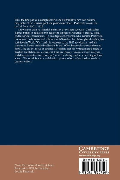 This authoritative new biography of the Russian poet and prose writer Boris Pasternak is the first part of a two-volume set, covering the period 1890-1928. Drawing on archives and many eyewitness accounts, Barnes' study sheds light on currently unexplored aspects of Pasternak's character and family background, and his artistic, social and historical environment. He combines biographical investigation with detailed textual analysis of translated quotations in verse and prose to reveal the source of Pasternak's extraordinary writings. The book examines a wide range of topics that include his musical enthusiasm and relations with Scriabin, his philosophical studies, his activities in World War I and his response to the 1917 revolutions, and his stance as a liberal artistic intellectual in the 1920s.