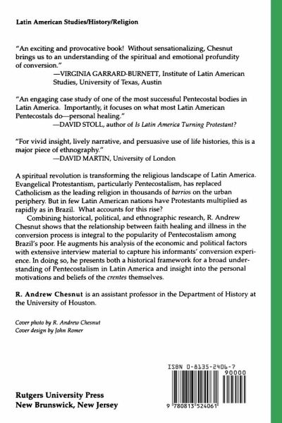 A spiritual revolution is transforming the religious landscape of Latin America. Evangelical Protestantism, particularly Pentecostalism, has replaced Catholicism as the leading religion in thousands of barrios on the urban periphery. But in few Latin American nations have Protestants multiplied as rapidly as in Brazil. What accounts for this rise? Combining historical, political, and ethnographic research, R. Andrew Chestnut shows that the relationship between faith healing and illness in the conversion process is integral to the popularity of Pentecostalism among Brazil's poor. He augments his analysis of the economic and political factors with extensive interview material to capture his informants' conversion experience. In doing so, he presents both a historical framework for a broad understanding of Pentecostalism in Latin America and insight into the personal motivations and beliefs of the crentes themselves.