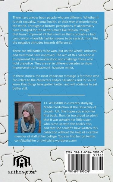 There have always been people who are different. Whether it is their sexuality, mental health, or their way of experiencing the world. Throughout history, perceptions of abnormality have changed for the better (much like fashion, though that hasn't improved all that much so that's probably a bad comparison - horrible fashion seems to be cyclical, much like the negative attitudes towards difference). There are still battles to be won, but on the whole, attitudes and treatment have improved. The aim of this collection is to represent the misunderstood and challenge those who hold prejudice. They are set in different decades to show improvement of treatment, however minor. In these stories, the most important message is for those who can relate to the characters and/or situations and for you to know that things have gotten better, and will continue to get better still.