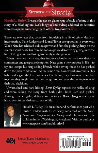Harold L. Turley II reveals the not-so-glamorous lifestyle of crime in this story of a Washington DC kingpin and a drug-addicted ex-detective who cross paths and change each other's lives forever. There are two fates that come from indulging in a life of crime: death or incarceration. Nate Rodgers and Lionel Taylor are opposites in every way. While Nate has achieved dubious power and fame by pushing drugs on the streets, Lionel has fallen from honor as a police detective by giving in to the lure of drug abuse and losing his family in the process. When these two men meet, they inspire each other to rise above their circumstances and grasp at redemption. Nate gains a new purpose in life—to try and escape his drug-selling lifestyle while saving those he has pushed down the path to addiction. At the same time, Lionel works to conquer his habit and regain the loved ones he's lost. Alone, they have no chance, but together they might muster the strength to overcome the consequences of their bad decisions. Unvarnished and hard-hitting, Born Dying exposes the reality of drug addiction, telling the story from both sides—both user and pusher. Through the struggles, defeats, and victories, Born Dying is a story of hope, even in the darkest corner of life.