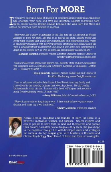 BORN FOR MORE is an inspiring memoir of one woman's journey from abject poverty, death and despair to living a life of dreams, destiny, and fulfillment. Believing that she was Born for More than the life she was leading. Though she escaped the ghetto and ascended to an Ivy League education, and obtained two master degrees, despair continued to haunt her. As you read her story of failure, defeat and triumphs, you will be inspired.