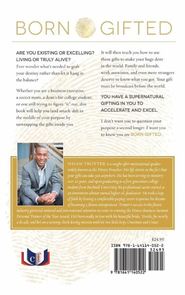 ARE YOU EXISTING OR EXCELLING? LIVING OR TRULY ALIVE? Ever wondered what's needed to grab your destiny rather than let it hang in the balance? Whether you are a business executive, a soccer mom, a dean's list college student, or one still trying to figure "it" out, this book will help you land smack-dab in the middle of your purpose by unwrapping the gifts inside you. It will then teach you how to use those gifts to make your huge dent in the world. Family and friends, work associates, and even mere strangers deserve to know what you got. Your gift must be broadcast before the world. YOU HAVE A SUPERNATURAL GIFTING IN YOU TO ACCELERATE AND EXCEL! I don't want you to question your purpose a second longer. I want you to know you are BORN GIFTED.