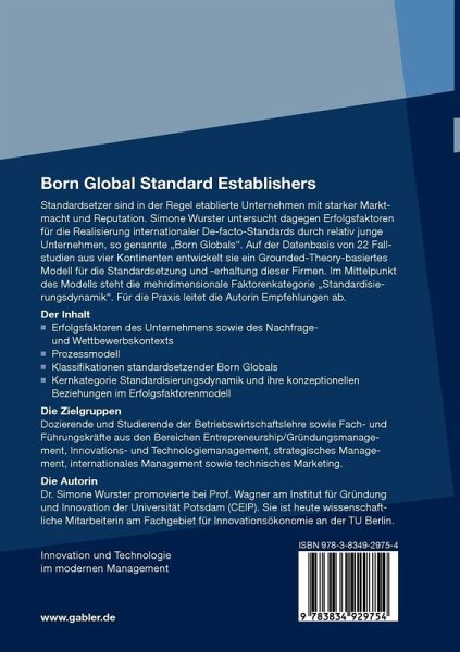 Standardsetzer sind in der Regel etablierte Unternehmen mit starker Marktmacht und Reputation. Simone Wurster untersucht dagegen Erfolgsfaktoren für die Realisierung internationaler De-facto-Standards durch relativ junge Unternehmen, so genannte "Born Globals". Auf der Datenbasis von 22 Fallstudien aus vier Kontinenten entwickelt sie ein Grounded-Theory-basiertes Modell für die Standardsetzung und -erhaltung dieser Firmen. Im Mittelpunkt des Modells steht die mehrdimensionale Faktorenkategorie "Standardisierungsdynamik". Für die Praxis leitet die Autorin Empfehlungen ab.