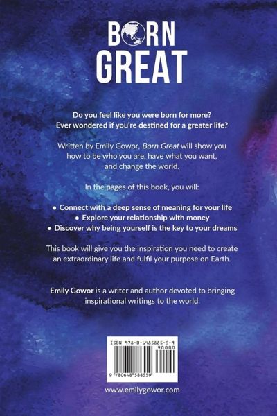Do you feel like you were born for more? Ever wondered if you are destined for a greater life? Written by Emily Gowor, Born Great will show you how to be who you are, have what you want, and change the world. This book will give you the inspiration you need to create an extraordinary life and fulfil your purpose on Earth.