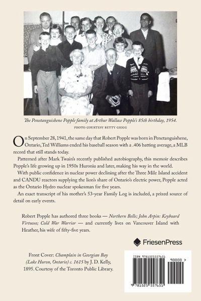 On September 28, 1941, the same day that Robert Popple was born in Penetanguishene, Ontario, Ted Williams ended his baseball season with a .406 batting average, a MLB record that still stands today. Patterned after Mark Twain's recently published autobiography, this memoir describes Popple's life growing up in 1950s Huronia and later, making his way in the world. With public confidence in nuclear power declining after the Three Mile Island accident and CANDU reactors supplying the lion's share of Ontario's electric power, Popple acted as the Ontario Hydro nuclear spokesman for five years. An exact transcript of his mother's 53-year Family Log is included, a prized source of detail on early events.