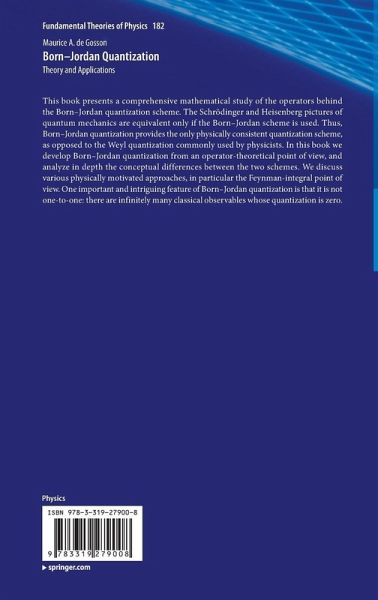 "In this book, the Born-Jordan and Weyl quantizations are confronted and discussed into details. ... The book is well written and in great part self-contained, it is intended as an introduction to Born-Jordan quantization both for physicists and mathematicians. The subject is analyzed both from the physical and the mathematical point of view." (Giovanni Rastelli, zbMATH 1338.81014, 2016)
