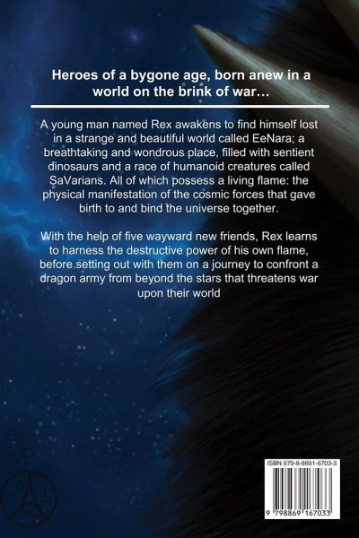 A young man named Rex awakens to find himself lost in a strange and beautiful world called EeNara; a breathtaking and wondrous place, filled with sentient dinosaurs and a race of humanoid creatures called SaVarians. All of which possess a living flame: the physical manifestation of the cosmic forces that gave birth to and bind the universe together. With the help of five wayward new friends, Rex learns to harness the destructive power of his own flame, before setting out with them on a journey to confront a dragon army from beyond the stars that threatens war upon their world.