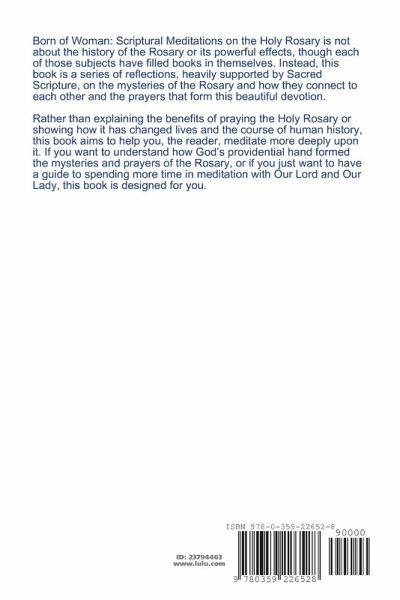 Born of Woman: Scriptural Meditations on the Holy Rosary is not about the history of the Rosary or its powerful effects, though each of those subjects have filled books in themselves. Instead, this book is a series of reflections, heavily supported by Sacred Scripture, on the mysteries of the Rosary and how they connect to each other and the prayers that form this beautiful devotion.
