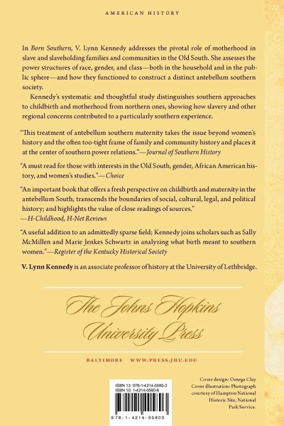In Born Southern, V. Lynn Kennedy addresses the pivotal roles of birth and motherhood in slaveholding families and communities in the Old South. She assesses the power structures of race, gender, and class-both in the household and in the public sphere-and how they functioned to construct a distinct antebellum southern society. Kennedy's unique approach links the experiences of black and white women, examining how childbirth and motherhood created strong ties to family, community, and region for both. She also moves beyond a simple exploration of birth as a physiological event, examining the social and cultural circumstances surrounding it: family and community support networks, the beliefs and practices of local midwives, and the roles of men as fathers and professionals. The southern household-and the relationships among its members-is the focus of the first part of the book. Integrating the experiences of all women, black and white, rich and poor, free and enslaved, these narratives suggest the complexities of shared experiences that united women in a common purpose but also divided them according to status. The second part moves the discussion from the private household into the public sphere, exploring how southerners used birth and motherhood to negotiate public, professional, and political identities. Kennedy's systematic and thoughtful study distinguishes southern approaches to childbirth and motherhood from northern ones, showing how slavery and rural living contributed to a particularly southern experience.