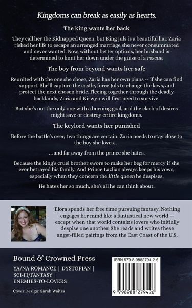 "She's such a bad girl, isn't she?" he taunted. "But she's a good girl for me." The king wants her back They call her the Kidnapped Queen, but King Juls is a beautiful liar. Zaria risked her life to escape an arranged marriage she never consummated and never wanted. Now, without better options, her husband is determined to hunt her down under the guise of a rescue. The boy from beyond wants her safe Reunited with the one she chose, Zaria has her own plans -- if she can find support. She'll capture the castle, force Juls to change the laws, and protect the next chosen bride. Fleeing together through the deadly backlands, Zaria and Kirwyn will first need to survive. But she's not the only one with a burning goal, and the clash of desires might save or destroy entire kingdoms. The keylord wants her punished Before the battle's over, two things are certain: Zaria needs to stay close to the boy she loves... ...and far away from the prince she hates. Because the king's cruel brother swore to make her beg for mercy if she ever betrayed his family. And Prince Lazlian always keeps his vows, especially when they concern the little queen he despises. He hates her so much, she's all he can think about. Kingdoms can break as easily as hearts. ******** Please be advised: Borne to Salt and Sin, the final book in the Beyond the God Sea Trilogy, is New Adult. This book contains mature content. Before reading, please see the Content Expectations at the beginning of the book.