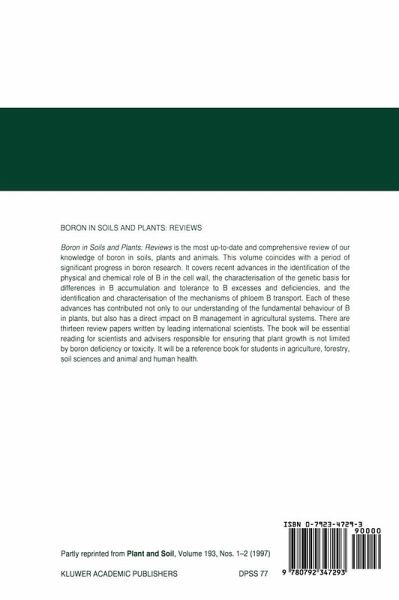`These are excellent reviews of boron in soils and plants and are well written. The book taken as a whole, brings the reader up-to-date on the current status of knowledge about boron as an essential plant nutrient...... It would make a very good reference text for university plant nutrition courses and should be on the reference shelf of all plant nutrition researchers.'