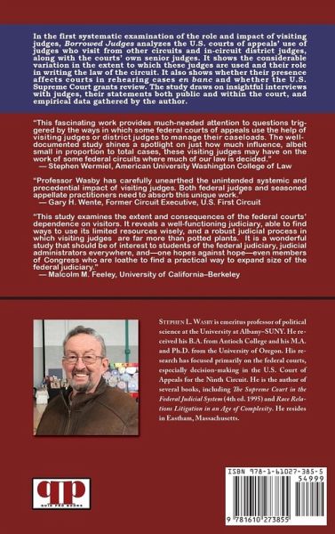 In the first systematic examination of the role and impact of visiting judges, Borrowed Judges analyzes the U.S. courts of appeals' use of judges who visit from other circuits and in-circuit district judges, along with the courts' own senior judges. It shows the considerable variation in the extent to which these judges are used and their role in writing the law of the circuit. It also shows whether their presence affects courts in rehearing cases en banc and whether the U.S. Supreme Court grants review. The study draws on insightful interviews with judges, their statements both public and within the court, and empirical data gathered by the author. "This fascinating work provides much-needed attention to questions triggered by the ways in which some federal courts of appeals use the help of visiting judges or district judges to manage their caseloads. The well-documented study shines a spotlight on just how much influence, albeit small in proportion to total cases, these visiting judges may have on the work of some federal circuits where much of our law is decided." — Stephen Wermiel, American University Washington College of Law "Professor Wasby has carefully unearthed the unintended systemic and precedential impact of visiting judges. Both federal judges and seasoned appellate practitioners need to absorb this unique work." — Gary H. Wente, Former Circuit Executive, U.S. First Circuit "This study examines the extent and consequences of the federal courts' dependence on visitors. It reveals a well-functioning judiciary, able to find ways to use its limited resources wisely, and a robust judicial process in which visiting judges are far more than potted plants. It is a wonderful study that should be of interest to students of the federal judiciary, judicial administrators everywhere, and—one hopes against hope—even members of Congress who are loathe to find a practical way to expand size of the federal judiciary." — Malcolm M. Feeley, University of California-Berkeley A new and compelling resource from Quid Pro Books.