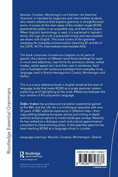 This is a unique reference book in English aimed at the level of language study that treats BCMS as a single grammar system, explaining and highlighting all the small differences between the four variants of this polycentric language.