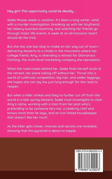 Hey girl! This opportunity could be deadly... Sadie Moose needs a vacation. It's been a long winter, what with a murder investigation, breaking up with her boyfriend, her bakery business booming, and watching her friends go through major life events. A week at an all-inclusive resort in Mexico should do the trick. But she has one last stop to make on her way out of town-delivering desserts to a chalet in the mountains where her college friend, Amy, is attending a retreat for Glamarosa Clothing, the multi-level marketing company she represents. When the road closes behind her, Sadie finds herself stuck at the retreat, her plane taking off without her. Thrust into a world of cutthroat competition, big hair, and wilder leggings, she hopes she can lay low just long enough for the road to reopen. But when a killer strikes and they're further cut off from the world in a late spring blizzard, Sadie must investigate to clear Amy's name, working with a man from her past who's pretending to be someone he's not, a celebrity chef who knows more than he says, and an iron-fisted housekeeper that doesn't like her much. As the killer gets closer, motives and secrets are revealed...showing that this pyramid is about to topple. Boss Babe Murder is a classic mansion murder mystery with a modern multi-level marketing boss babe twist! My not so cozy mysteries feature an amateur sleuth, diverse and quirky characters, and mature language. It's the third book in the Jackson Hole Moose's Bakery Not So Cozy Mystery series, but stands alone.