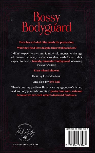 He is her ex's dad. She needs his protection. Will they find love despite their stubbornness? I didn't expect to own my family's old money at the age of nineteen after my mother's sudden death. I also didn't expect to have a broody, muscular bodyguard following me everywhere... even when I shower. He is my forbidden fruit. And also my ex's dad. There's one tiny problem. He is twice my age, my ex's father, my bodyguard who wants to protect me and... ruin me because we are each other's depraved fantasies. Bossy Bodyguard is the third book in the new adult sweet, steamy and forbidden romance Dominating Desires Series. If you like raw emotions, age-gap romance, passionate HEAs with sizzling hot scenes, then you'll love Mahi Mistry's Dominating Desires Series. Buy Bossy Bodyguard to read the sweet forbidden book today! Each book in the Dominating Desires series as a STANDALONE: * Twisted Therapist * Tempting Teacher * Bossy Bodyguard * Billionaire Boss