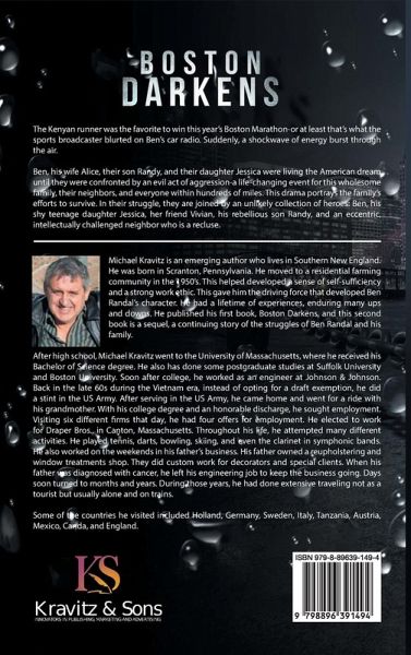 Michael Kravitz is an emerging author who lives in southern New England. He was born in Scranton, Pennsylvania. He moved to a residential farming community in the 1950s. This helped develop a sense of self-sufficiency and a strong work ethic. This gave him the driving force that developed Ben Randal's character. He had a lifetime of experiences, enduring many ups and downs. He published his first book, Boston Darkens, and this second book is a sequel, a continuing story of the struggles of Ben Randal and his family. After high school, Michael Kravitz went to the University of Massachusetts, where he received his bachelor of science degree. He also has done some postgraduate studies at Suffolk University and Boston University. Soon after college, he worked as an engineer at Johnson & Johnson. Back in the late 60s, during the Vietnam era, instead of opting for a draft exemption, he did a stint in the US Army. After serving in the US Army, he came home and went for a ride with his grandmother. With his college degree and an honorable discharge, he sought employment. Visiting six different firms that day, he had four offers for employment. He elected to work for Draper Bros., in Canton, Massachusetts. Throughout his life, he attempted many different activities. He played tennis, darts, bowling, skiing, and even the clarinet in symphonic bands. He also worked on the weekends in his father's business. His father owned a reupholstering and window treatments shop. They did custom work for decorators and special clients. When his father was diagnosed with cancer, he left his engineering job to keep the business going. Days soon turned to months and years. During those years, he had done extensive traveling not as a tourist but usually alone and on trains. Some of the countries he visited include Holland, Germany, Sweden, Italy, Tanzania, Austria, Mexico, Canada, England and the Philippines.