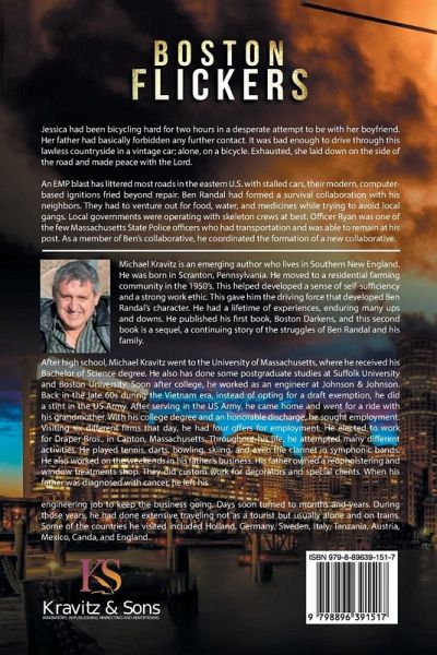 Michael Kravitz is an emerging author who lives in southern New England. He was born in Scranton, Pennsylvania. He moved to a residential farming community in the 1950s. This helped develop a sense of self-sufficiency and a strong work ethic. This gave him the driving force that developed Ben Randal's character. He had a lifetime of experiences, enduring many ups and downs. He published his first book, Boston Darkens, and this second book is a sequel, a continuing story of the struggles of Ben Randal and his family. After high school, Michael Kravitz went to the University of Massachusetts, where he received his bachelor of science degree. He also has done some postgraduate studies at Suffolk University and Boston University. Soon after college, he worked as an engineer at Johnson & Johnson. Back in the late 60s, during the Vietnam era, instead of opting for a draft exemption, he did a stint in the US Army. After serving in the US Army, he came home and went for a ride with his grandmother. With his college degree and an honorable discharge, he sought employment. Visiting six different firms that day, he had four offers for employment. He elected to work for Draper Bros., in Canton, Massachusetts. Throughout his life, he attempted many different activities. He played tennis, darts, bowling, skiing, and even the clarinet in symphonic bands. He also worked on the weekends in his father's business. His father owned a reupholstering and window treatments shop. They did custom work for decorators and special clients. When his father was diagnosed with cancer, he left his engineering job to keep the business going. Days soon turned to months and years. During those years, he had done extensive traveling not as a tourist but usually alone and on trains. Some of the countries he visited include Holland, Germany, Sweden, Italy, Tanzania, Austria, Mexico, Canada, England and the Philippines.