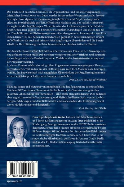 Betreibermodelle - Chancen und Risiken sind das Thema des Buches. Das Betreiber- bzw. BOT-Modell zur Finanzierung öffentlicher Infrastruktureinrichtungen ist ein flexibles Deckungskonzept. Vielen Beteiligten sind die Begriffe der Betriebswirtschaft und ei damit verbundenen Risiken unbekannt. Durch diese Darstellung öffnet sich das Verständnis für Cashflow und den Zusammenhang mit Risikomanagement.