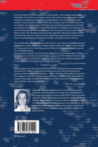 Betreibermodelle - Chancen und Risiken sind das Thema des Buches. Das Betreiber- bzw. BOT-Modell zur Finanzierung öffentlicher Infrastruktureinrichtungen ist ein flexibles Deckungskonzept. Vielen Beteiligten sind die Begriffe der Betriebswirtschaft und ei damit verbundenen Risiken unbekannt. Durch diese Darstellung öffnet sich das Verständnis für Cashflow und den Zusammenhang mit Risikomanagement.