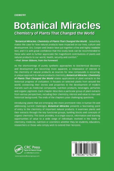 'Botanical Miracles: Chemistry of Plants That Changed the World...beautifully makes the case for how natural products have impacted on our lives, culture and development. Drs. Cooper and Deakin have put together a fine and highly readable text, and it is with great confidence that this lovely book can be recommended to those who wish to further appreciate the magnificent contributions of plants and natural products to our world, health, security and comfort.'