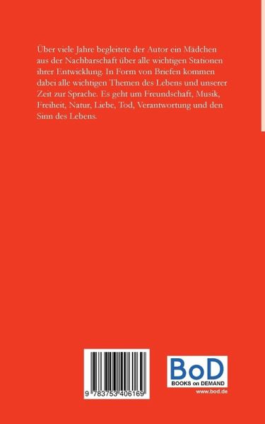 Über viele Jahre begleitete der Autor ein Mädchen aus der Nachbarschaft über alle wichtigen Stationen ihrer Entwicklung. In Form von Briefen kommen dabei alle wichtigen Themen des Lebens und unserer Zeit zur Sprache. Es geht um Freundschaft, Musik, Freiheit, Natur, Liebe, Tod, Verantwortung und den Sinn des Lebens.