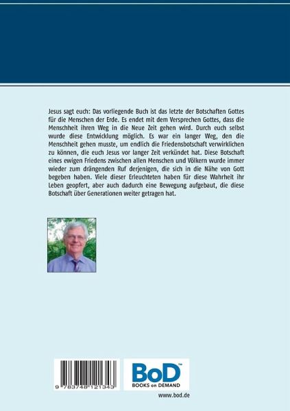 Jesus sagt euch: Das vorliegende Buch ist das letzte der Botschaften Gottes für die Menschen der Erde. Es endet mit dem Versprechen Gottes, dass die Menschheit ihren Weg in die Neue Zeit gehen wird. Durch euch selbst wurde diese Entwicklung möglich. Es war ein langer Weg, den die Menschheit gehen musste, um endlich die Friedensbotschaft verwirklichen zu können, die euch Jesus vor langer Zeit verkündet hat. Diese Botschaft eines ewigen Friedens zwischen allen Menschen und Völkern wurde immer wieder zum drängenden Ruf derjenigen, die sich in die Nähe von Gott begeben haben. Viele dieser Erleuchteten haben für diese Wahrheit ihr Leben geopfert, aber auch dadurch eine Bewegung aufgebaut, die diese Botschaft über Generationen weiter getragen hat. Nun ist die Zeit sehr nahe, wo ihr sagen könnt, es ist vollbracht. Es liegt aber noch viel Arbeit vor euch, um alle Menschen in die Nähe von Gott zu bringen.Wir, die Wächter der Erde und alle Helfer Gottes behüten euch mit unserer ganzen Liebe