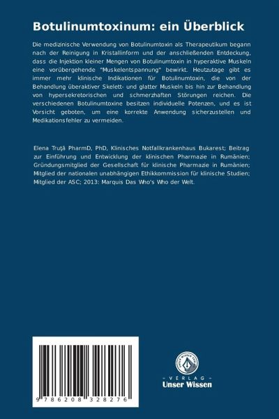Die medizinische Verwendung von Botulinumtoxin als Therapeutikum begann nach der Reinigung in Kristallinform und der anschließenden Entdeckung, dass die Injektion kleiner Mengen von Botulinumtoxin in hyperaktive Muskeln eine vorübergehende "Muskelentspannung" bewirkt. Heutzutage gibt es immer mehr klinische Indikationen für Botulinumtoxin, die von der Behandlung überaktiver Skelett- und glatter Muskeln bis hin zur Behandlung von hypersekretorischen und schmerzhaften Störungen reichen. Die verschiedenen Botulinumtoxine besitzen individuelle Potenzen, und es ist Vorsicht geboten, um eine korrekte Anwendung sicherzustellen und Medikationsfehler zu vermeiden.