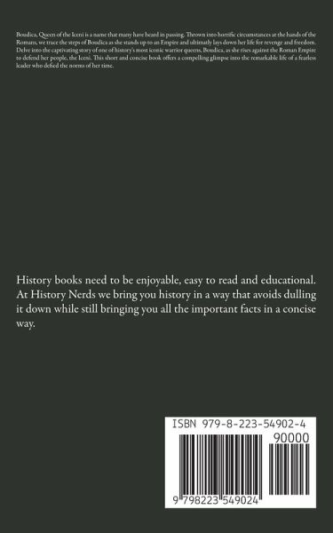 Boudica, Queen of the Iceni is a name that many have heard in passing. Thrown into horrific circumstances at the hands of the Romans, we trace the steps of Boudica as she stands up to an Empire and ultimatly lays down her life for revenge and freedom. Delve into the captivating story of one of history's most iconic warrior queens, Boudica, as she rises against the Roman Empire to defend her people, the Iceni. This short and concise book offers a compelling glimpse into the remarkable life of a fearless leader who defied the norms of her time.