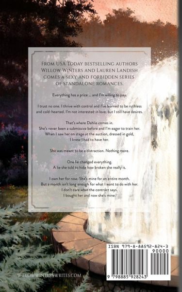 From USA Today bestselling authors Willow Winters and Lauren Landish comes a sexy and forbidden series of standalone romances. Everything has a price ... and I'm willing to pay. I trust no one. I thrive with control and I've learned to be ruthless and cold-hearted. I'm not interested in love, but I still have desires. That's where Dahlia comes in. She's never been a submissive before and I'm eager to train her. When I saw her on stage at the auction, dressed in gold, I knew I had to have her. She was meant to be a distraction. Nothing more. One lie changed everything. A lie she told to hide how broken she really is. I own her for now. She's mine for an entire month. But a month isn't long enough for what I want to do with her. I don't care what the contract says. I bought her and now she's mine.