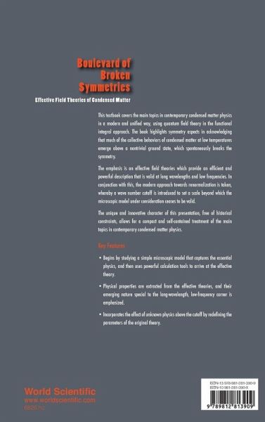 This textbook covers the main topics in contemporary condensed matter physics in a modern and unified way, using quantum field theory in the functional-integral approach. The book highlights symmetry aspects in acknowledging that much of the collective behaviors of condensed matter systems at low temperatures emerge above a nontrivial ground state, which spontaneously breaks the symmetry.The emphasis is on effective field theories which provide an efficient and powerful description that is valid at long wavelengths and low frequencies. In conjunction with the emphasis on effective theories, a modern approach towards renormalization is taken, whereby a wavenumber cut-off is introduced to set a scale beyond which the microscopic model under consideration ceases to be valid.The unique and innovative character of this presentation, free of historical constraints, allows for a compact and self-contained treatment of the main topics in contemporary condensed matter physics.