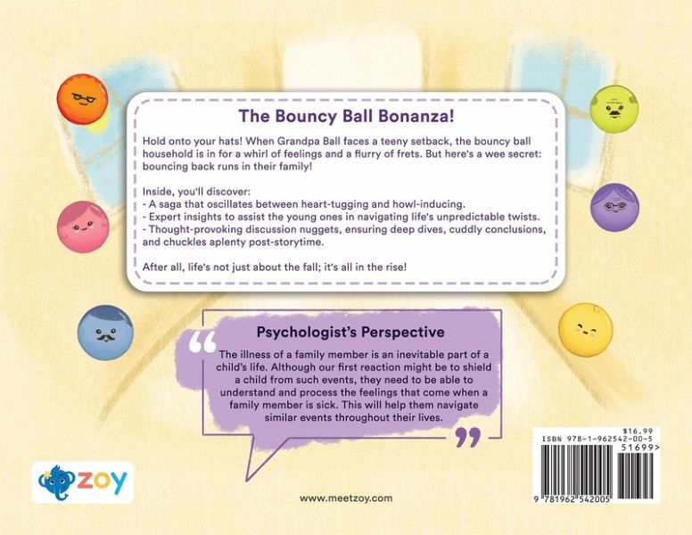 Ever wondered about the exciting tales of a bouncy ball family? Especially when a teeny-tiny mishap befalls one of their beloved members? Step into the world of "Bounce Back" and join Li'l Ball and family on their springy escapade as they navigate life's unpredictable terrains! Witness the highs and lows, literally, when Grandpa Ball encounters a small 'deflating' setback. Young Li'l Ball unravels the mysteries of life's bumps, family health scares, and, oh, the art of bouncing back! (Clever, right?) Tailored for youngsters aged 2-4, our story twirls between whimsical rhymes and sincere moments, creating a delightful way for kiddos to comprehend and converse about family health situations. And a little nudge for the grown-ups: we've woven in invaluable advice from our psychologists because sometimes we all need guidance on the best ways to assist our tiny humans. ¿¿¿¿ Vital life teachings? Absolutely! ¿¿¿¿ Rollicking, rhythmic tales? Most definitely! ¿¿¿¿ Expert guidance fused with fun? You've got it! Jump in, ride the waves, and always remember - life's one big bounce, especially when you master the art of the comeback!