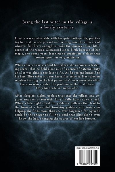 Being the last witch in the village is a lonely existence. Elisette was comfortable with her quiet cottage life, practicing her craft as she pleased and helping ease the ailments of whoever felt brave enough to make the journey to her little corner of the woods. Ostracized since birth because of her magic, she spent years learning to coexist in a place that frowns upon her very existence. When concerns arise about her father, she uncovers a festering secret that he held close out of a sense of paternal duty until it was almost too late to fix. As he resigns himself to his fate, Elise takes it upon herself to solve it. Her solution requires turning to the last person she'd ever associate with: the man who created the problem in the first place. Only his trade is... impossible. After sleepless nights, useless trips into the village, and copious amounts of research, Elise finally hunts down a lead. When a late-night ritual for guidance delivers that lead in the form of a beautiful, towering goddess who insists on helping, she finds more than she ever bargained for. Sylvane could be the answer to filling a void that Elise didn't even know she had, changing the course of her life forever.