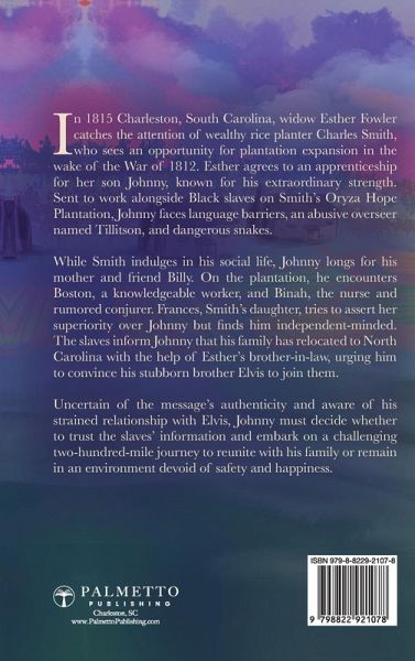 Discover a fascinating tale of family, courage, and determination that spans years amid the Civil War Era. The unnaturally-strong son of a struggling widow learns of life, love, and more during his work on a plantation. In 1815 Charleston, South Carolina, Esther Fowler, a struggling widowed mother, catches the attention of wealthy rice planter Charles Smith and his cunning business agent, Elliot Mclean. Smith learns that the War of 1812 has ended and foresees an economic boom in the region. However, he faces a shortage of field workers for his plantation expansion plans. Smith proposes an apprenticeship for Esther's son Johnny, who exhibits remarkable strength. Reluctantly, Esther agrees, and Johnny is sent to work on Smith's Oryza Hope Plantation alongside Black slaves. Adjusting to his new surroundings proves challenging for Johnny, with language barriers, an abusive overseer named Tillitson, and the constant threat of venomous snakes. While Smith becomes preoccupied with social events and his relationship with a mulatto lover, Johnny yearns for his mother and friend Billy, with whom he once dreamt of becoming sailors. At the plantation, he encounters Boston, a knowledgeable field worker, and Binah, a rumored conjurer and the plantation's nurse. Johnny receives education from Frances, Smith's daughter, who attempts to assert her superiority but finds Johnny to be independent-minded. One day, the slaves inform Johnny that his mother and sisters have relocated to North Carolina with the help of Esther's brother-in-law. They urge Johnny to persuade his stubborn brother, Elvis, to come along, and rejoin their family. Uncertain about the validity of the message and aware of the strained relationship with Elvis, Johnny must decide whether to trust the slaves' information and embark on a challenging two-hundred-mile journey to reunite with his family or stay in an environment that will never promise safety or happiness. The story is based on actual events.