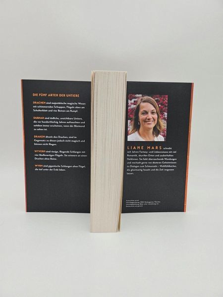 Das Cover von „Bound by Flames“ finde ich wunderschön. Die Farbauswahl ist einfach nur großartig und das Auge sticht direkt hervor. In meinen Augen erkennt man auch direkt, dass es sich hierbei um eine Drachengeschichte handelt. Zudem hat das Buch auch einen Farbschnitt, der relativ schlicht ist, mir aber wirklich sehr gut gefällt, da er in meinen Augen einfach gut zur Geschichte und dem Cover passt.