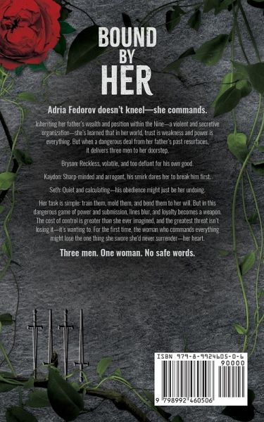 Adria Fedorov doesn't kneel-she commands. Inheriting her father's wealth and position within the Nine-a violent and secretive organization-she's learned that in her world, trust is weakness and power is everything. But when a dangerous deal from her father's past resurfaces, it delivers three men to her doorstep. Bryson: Reckless, volatile, and too defiant for his own good. Kaydon: Sharp-minded and arrogant, his smirk dares her to break him first. Seth: Quiet and calculating-his obedience might just be her undoing. Her task is simple: train them, mold them, and bend them to her will. But in this dangerous game of power and strategy, lines blur, and loyalty becomes a weapon. The cost of control is greater than she ever imagined, and the greatest threat isn't losing it-it's wanting to. For the first time, the woman who commands everything might lose the one thing she swore she'd never surrender-her heart. Three men. One woman. No turning back.