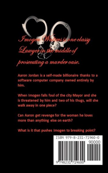 Imogen Walters is one classy Lawyer in the middle of prosecuting a murder case. Aaron Jordan is a self-made billionaire thanks to a software computer company owned entirely by him. When Imogen falls foul of the city Mayor, and she is threatened by him and two of his thugs, will she walk away in one piece? Can Aaron get revenge for the woman he loves more than anything else on earth? What is it that pushes Imogen to breaking point?