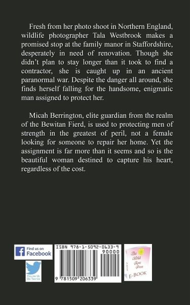 Fresh from her photo shoot in Northern England, wildlife photographer Tala Westbrook makes a promised stop at the family manor in Staffordshire, desperately in need of renovation. Though she didn't plan to stay longer than it took to find a contractor, she is caught up in an ancient paranormal war. Despite the danger all around, she finds herself falling for the handsome, enigmatic man assigned to protect her. Micah Berrington, elite guardian from the realm of the Bewitan Fierd, is used to protecting men of strength in the greatest of peril, not a female looking for someone to repair her home. Yet the assignment is far more than it seems and so is the beautiful woman destined to capture his heart, regardless of the cost.