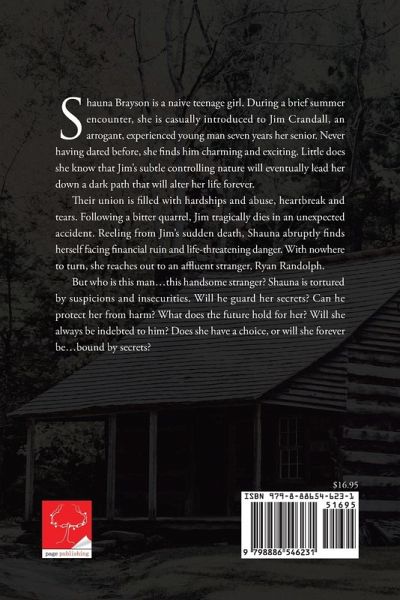 Shauna Brayson is a naive teenage girl. During a brief summer encounter, she is casually introduced to Jim Crandall, an arrogant, experienced young man seven years her senior. Never having dated before, she finds him charming and exciting. Little does she know that Jim's subtle controlling nature will eventually lead her down a dark path that will alter her life forever. Their union is filled with hardships and abuse, heartbreak and tears. Following a bitter quarrel, Jim tragically dies in an unexpected accident. Reeling from Jim's sudden death, Shauna abruptly finds herself facing financial ruin and life-threatening danger. With nowhere to turn, she reaches out to an affluent stranger, Ryan Randolph. But who is this man...this handsome stranger? Shauna is tortured by suspicions and insecurities. Will he guard her secrets? Can he protect her from harm? What does the future hold for her? Will she always be indebted to him? Does she have a choice, or will she forever be...bound by secrets?