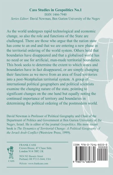 As the world undergoes rapid technological and economic change, so too the role and functions of the State are being challenged. There are those who argue that that the nation state has come to an end and that we are entering a new phase in the territorial ordering of the world system. Others hold that boundaries have disappeared and that a globalized world has no need or use for artificial, man-made, territorial barriers. The contributions here seek to determine the extent to which states and boundaries have, in fact, disappeared, or are simply changing their functions as we move from an era of fixed territories into a post-Westphalian territorial system. A group of international political geographers and political scientists examine the changing nature of the state, pointing to significant changes on the one hand, but equally noting the continued importance of territory and boundaries in determining the political ordering of the post-modern world.