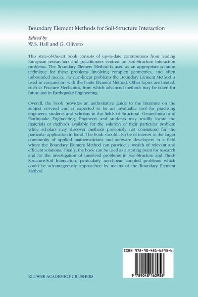 W S HALL School of Computing and Mathematics, University of Teesside, Middlesbrough, TS1 3BA UK G OLIVETO Division of Structural Engineering, Department of Civil and Environmental Engineering, University of Catania, Viale A. Doria 6, 95125 Catania, Italy Soil-Structure Interaction is a challenging multidisciplinary subject which covers several areas of Civil Engineering. Virtually every construction is connected to the ground and the interaction between the artefact and the foundation medium may affect considerably both the superstructure and the foundation soil. The Soil-Structure Interaction problem has become an important feature of Structural Engineering with the advent of massive constructions on soft soils such as nuclear power plants, concrete and earth dams. Buildings, bridges, tunnels and underground structures may also require particular attention to be given to the problems of Soil-Structure Interaction. Dynamic Soil-Structure Interaction is prominent in Earthquake Engineering problems. The complexity of the problem, due also to its multidisciplinary nature and to the fact of having to consider bounded and unbounded media of different mechanical characteristics, requires a numerical treatment for any application of engineering significance. The Boundary Element Method appears to be well suited to solve problems of Soil- Structure Interaction through its ability to discretize only the boundaries of complex and often unbounded geometries. Non-linear problems which often arise in Soil-Structure Interaction may also be treated advantageously by a judicious mix of Boundary and Finite Element discretizations.
