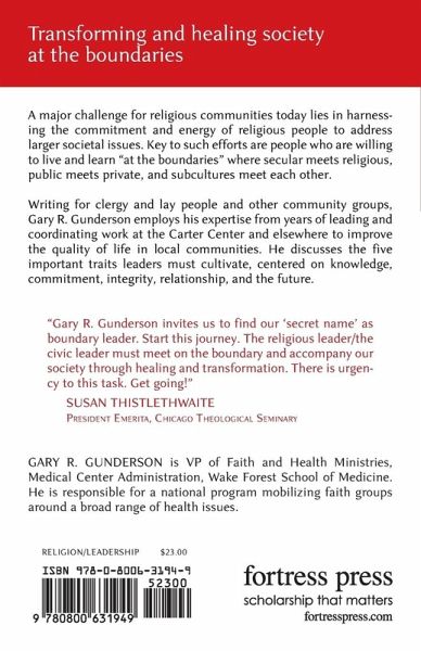 A major challenge for religious communities today lies in harnessing the commitment and energy of religious people to address larger societal issues. Key to such efforts are people who are willing to live and learn ''at the boundaries'' where secular meets religious, public meets private, and subcultures meet each other. ''A way of life on the boundaries, lived in community and faith, finds a broad menu of possibilities, '' says Gunderson. Writing for clergy and lay people and other community groups, Gunderson employs his expertise from years of leading and coordinating work at the Carter Center and elsewhere to improve the quality of life in local communities. He discusses the five important traits leaders must cultivate, centered on knowledge, commitment, integrity, relationship, and the future.