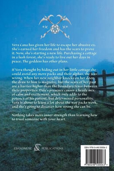 Vera Cana has given her life to escape her abusive ex. She's earned her freedom and has the scars to prove it. Now, she's starting a new life. Purchasing a cottage in a lush forest, she's ready to live out her days in peace. The goddess has other plans. If Vera thought by hiding out in her little cottage she could avoid any more packs and their alphas, she was wrong. When her new neighbor knocks on her door, the draw to him is magnetic, but the scars of her past are a barrier higher than the boundary fence between their properties. Dale's presence causes a heady mix of calm and excitement, which only adds to the potency of his patient, but determined personality. Vera is about to learn a lot about the way packs work, and she's going to discover how strong she can be. Nothing takes more inner strength than learning how to trust someone with your heart. A stand-alone paranormal romance.