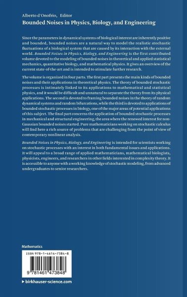 ??Since the parameters in dynamical systems of biological interest are inherently positive and bounded, bounded noises are a natural way to model the realistic stochastic fluctuations of a biological system that are caused by its interaction with the external world. Bounded Noises in Physics, Biology, and Engineering is the first contributed volume devoted to the modeling of bounded noises in theoretical and applied statistical mechanics, quantitative biology, and mathematical physics. It gives an overview of the current state-of-the-art and is intended to stimulate further research.