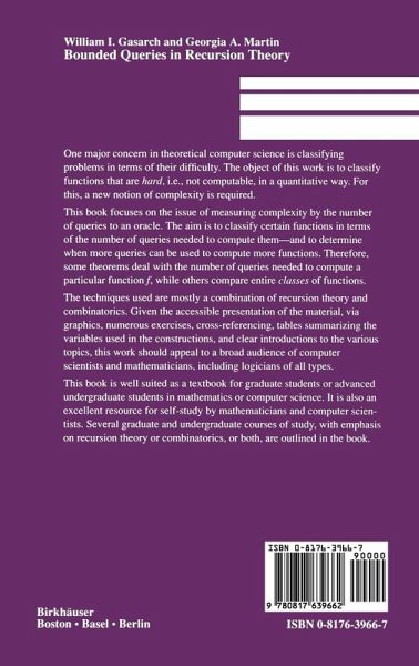 "Ideal for an advanced undergraduate or beginning graduate student who has some exposure to basic computability theory and wants to see what one can do with it. The questions asked are interesting and can be easily understood and the proofs can be followed without a large amount of training in computability theory."