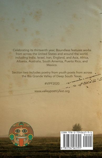 BOUNDLESS 2020 the Anthology of the RIO GRANDE VALLEY INTERNATIONAL POETRY FESTIVAL Boundless is the official anthology of the Rio Grande Valley International Poetry Festival (VIPF), founded in 2008 by Daniel García Ordaz and Brenda Nettles Riojas. VIPF is held annually the last weekend in April in deep South Texas as a celebration of National Poetry Month. www.valleypoetryfest.org #VIPF2020