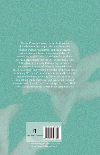 Thanjai Prakash is known for his bold stories that talk about the complexities and absurdities in man-woman relationships and the attendant socio-economic issues. Boundless and Bare-1 presents ten stories cherry-picked from his work that offer us a great insight into the lives of the middle-class of Thanjavur in the early 19th century. In "Mabel", the daughter is attracted to her ill-tempered father and remains spinster for the sake of his well-being. "Prejudice" talks about a woman afflicted with leprosy who draws leaves and flowers on her body to combat her confinement. In "Uncle", a sexually abused teenager finally finds herself in an unexpected mess. All the stories are feminocentric written in his inevitable style.