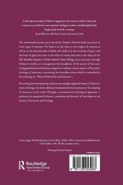 The seventeenth-century poet and divine Thomas Traherne finds innocence in every stage of existence. Boundless Innocence in Thomas Traherne's Poetic Theology traces innocence through Traherne's works as it transgresses the boundaries of the estates of the soul. Recovering and reinterpreting a key but increasingly neglected theme in Traherne's poetic theology, this book addresses fundamental misconceptions of the meaning of innocence in his work. Through a contextual and theological approach, it indicates the unexplored richness, complexity and diversity of this theme in the history of literature and theology.