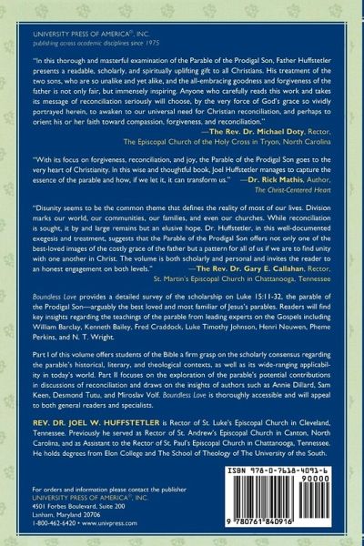 Boundless Love provides a detailed survey of the scholarship on Luke 15:11-32, the parable of the Prodigal Son-arguably the best loved and most familiar of Jesus' parables. Readers will find key insights regarding the teachings of the parable from leading experts on the Gospels including William Barclay, Kenneth Bailey, Fred Craddock, Luke Timothy Johnson, Henri Nouwen, Pheme Perkins, and N.T. Wright.